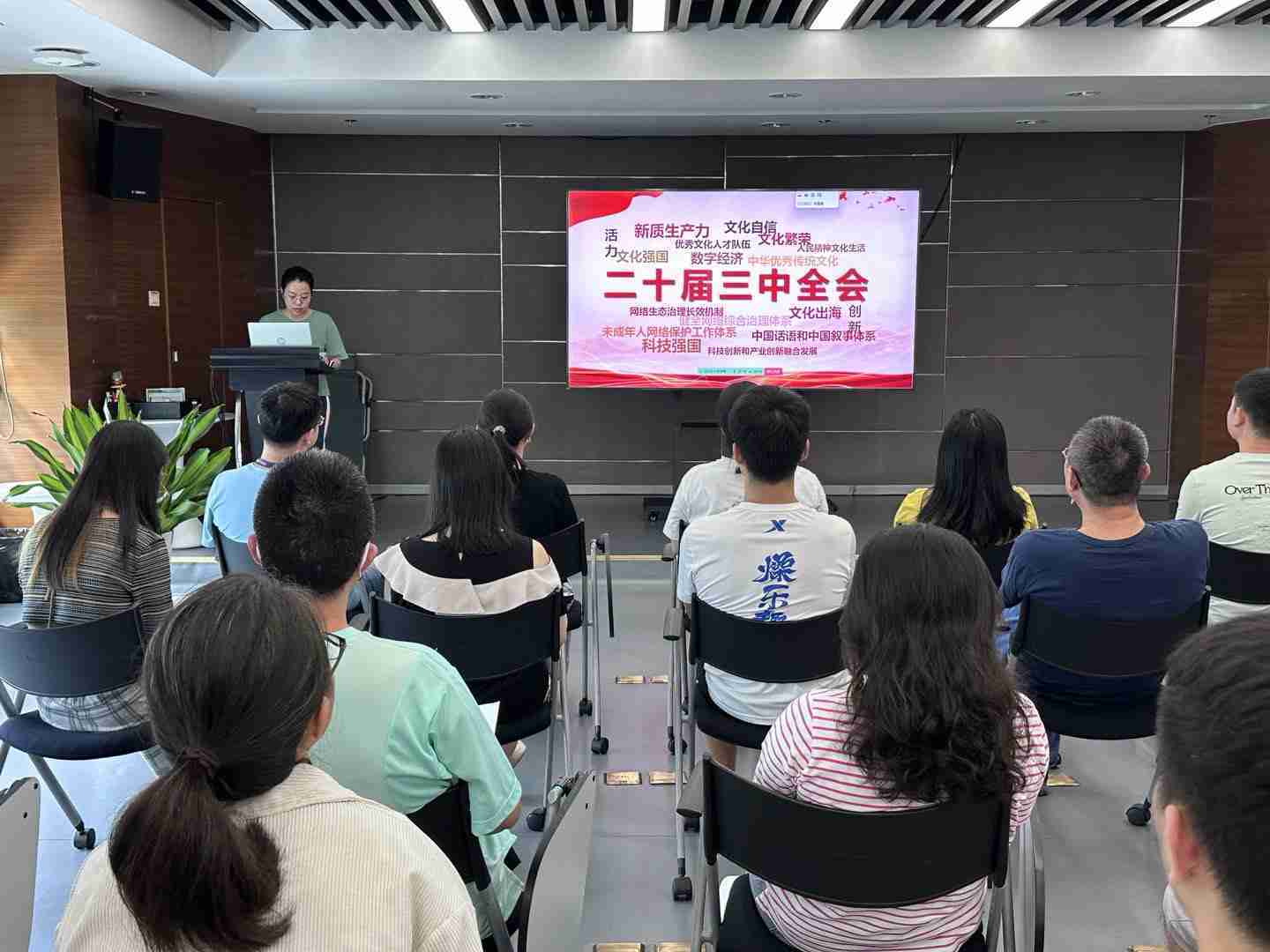 与会人员深入学习《决定》内容。。。党的二十届三中全会提出必须增强文化自信,,,,发展社会主义先进文化,,弘扬革命文化,,传承中华优秀传统文化,,,,加快适应信息技术迅猛发展新形势,,,构建更有效力的国际传播体系,,,,这为广大文化产业工作者指明了奋斗方向。。。