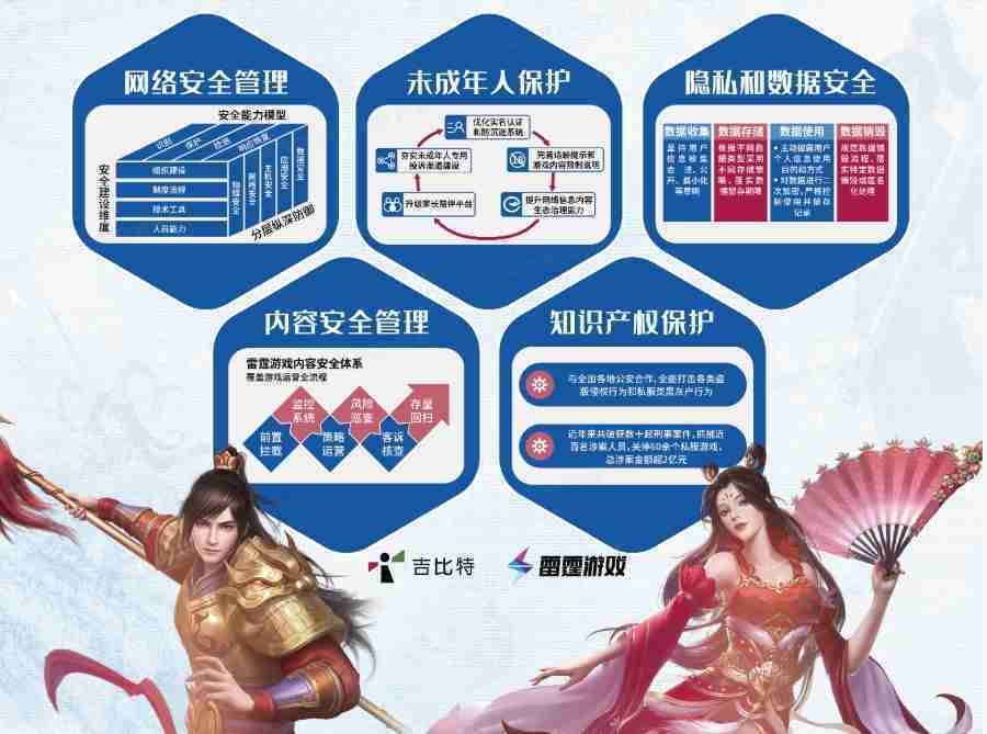 本次yaxin111展区以网络安全管理、、、内容安全管理、、、、未成年人保护、、隐私和数据安全、、知识产权保护五个模块介绍公司游戏安全工作成果,,,,体现yaxin111高度重视网络安全,,严格遵守相关法律法规要求,,,,积极承担企业主体责任。。。。