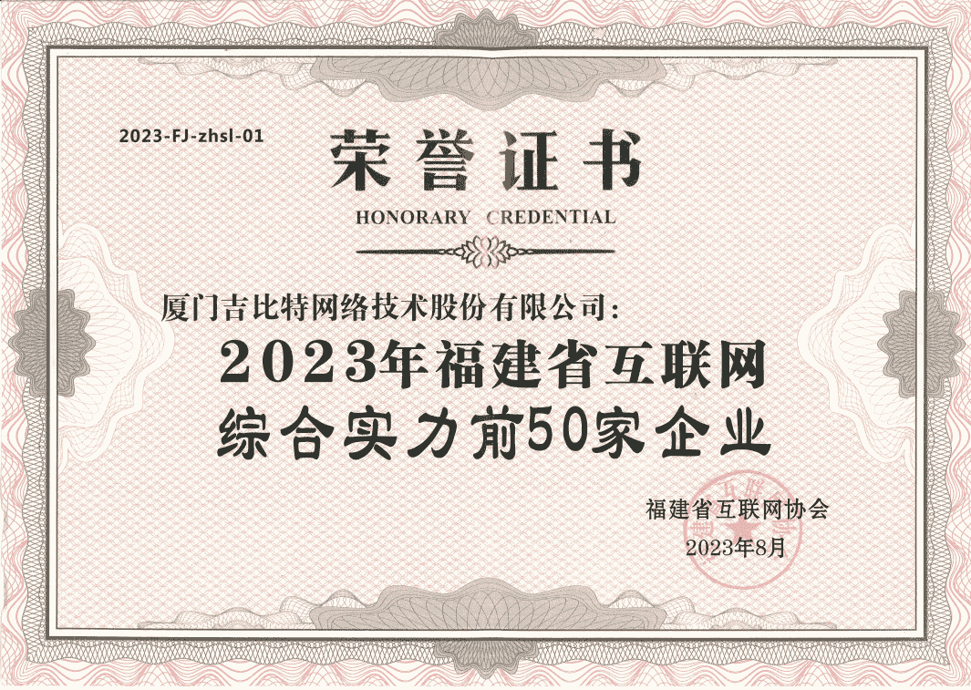 9月14日,,福建省互联网协会在2023年东南科技论坛上发布了2023年福建省互联网企业综合实力研究评价结果,,,并对上榜企业颁奖。。这是福建省互联网协会连续7年开展互联网企业综合实力研究工作。。。厦门yaxin111网络技术股份有限公司(以下简称“yaxin111”或“公司”)每年均成功入选,,,2023年位列第1位。。。。