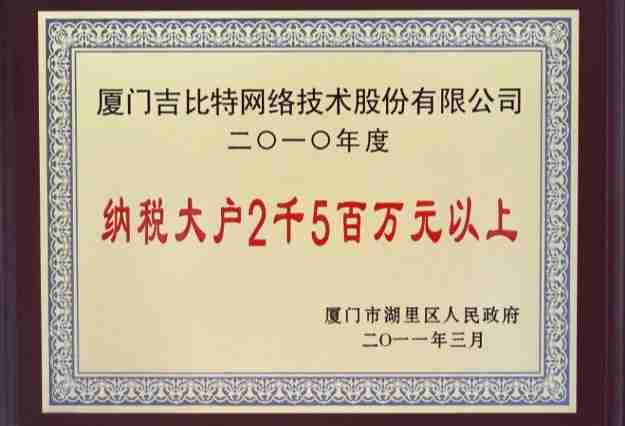 日前,,公司被厦门市湖里区人民政府授予了“2010年纳税大户”的荣誉称号,,充分体现了公司一贯合法纳税、、诚信经营的良好企业社会公民行为。。